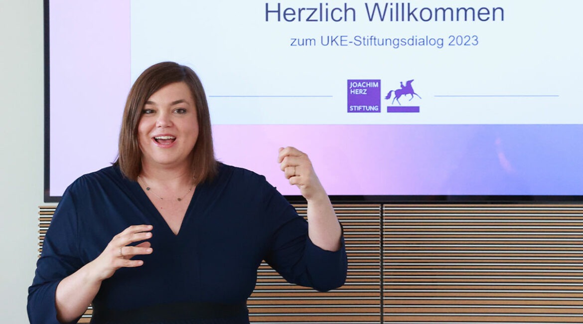 Die Veranstaltung, welche der Auftakt einer Eventreihe ist, startete mit einem Grußwort von Wissenschaftssenatorin und Zweite Bürgermeisterin, Katharina Fegebank, die für 2023 die Patenschaft der UKE-Stiftung übernommen hat: