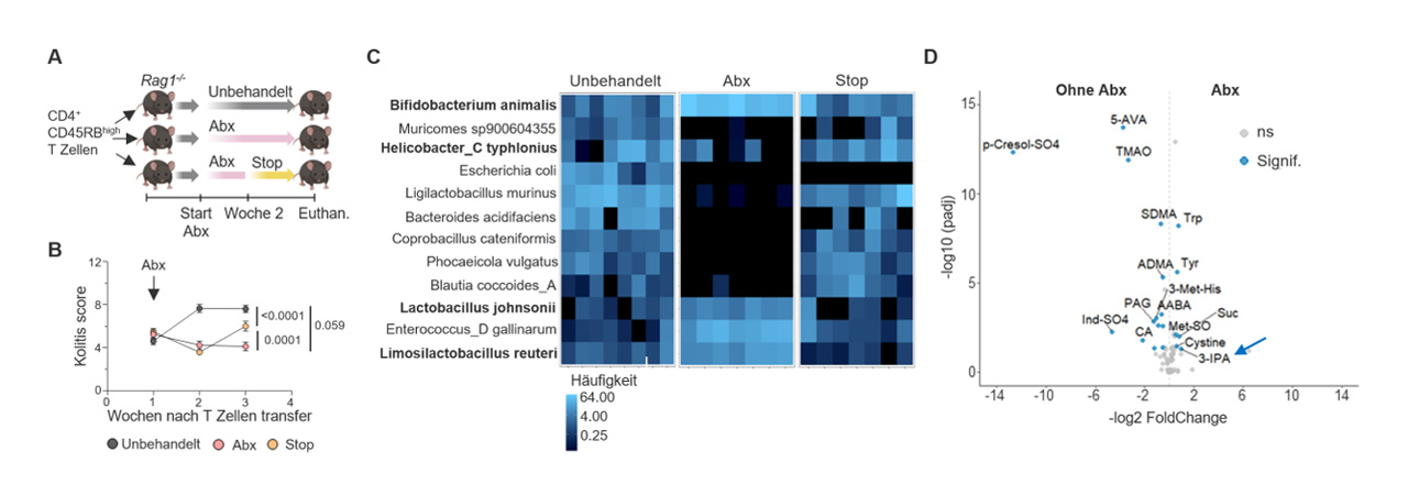 Bei Menschen mit Darmkrebs oder entzündlichen Darmerkrankung kann es zur Entfernung des Dickdarms und einer chirurgischen Anlage eines Stuhlreservoirs (Pouch) kommen. Etwa die Hälfte dieser Patientinnen und Patienten leiden im Verlauf unter einer Pouchitis, einer häufig wiederkehrenden schmerzhaften, chronischen Entzündung des operierten Darmabschnittes. Eine Behandlung mit Antibiotika ist in diesem Fall kurzzeitig sehr effektiv, was vermuten lässt, dass das die Modulation der Bakterien im Darm, auch Mikrobiota genannt, und deren Metaboliten ein außergewöhnliches therapeutisches Potential bei Behandlung von Entzündung der Darmschleimhaut hat.